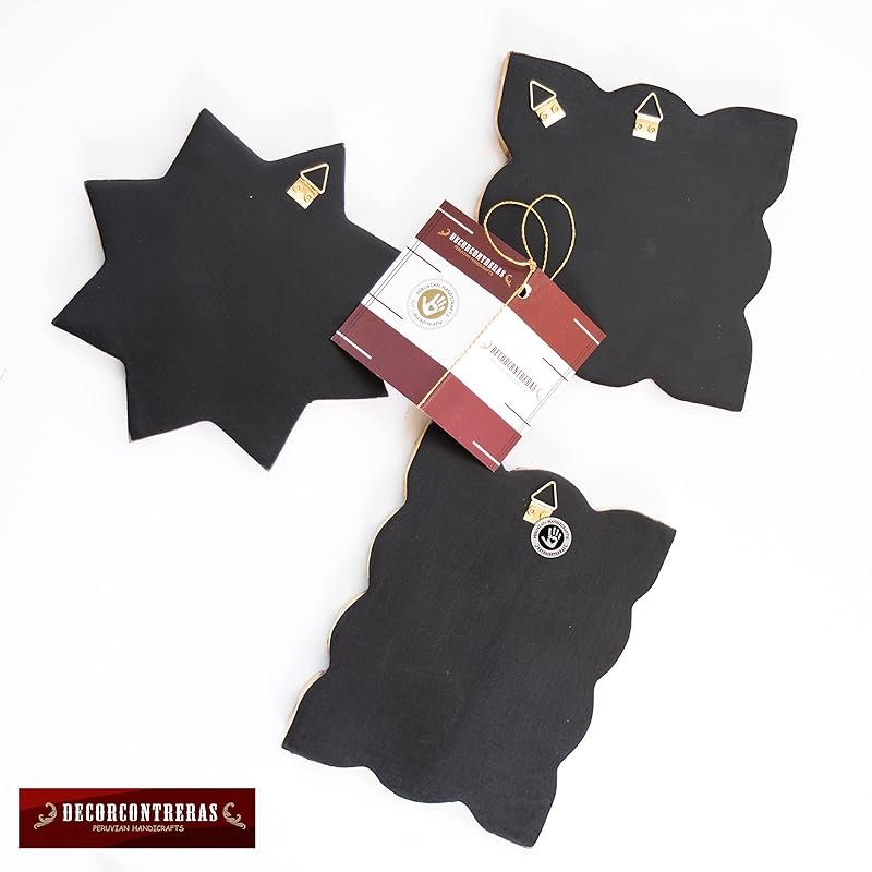 Small Decorative Wall Mirror set of 3 - Accent mirrors of 6in for wall decor, Peruvian Mirrors Vanity with bronze leaf